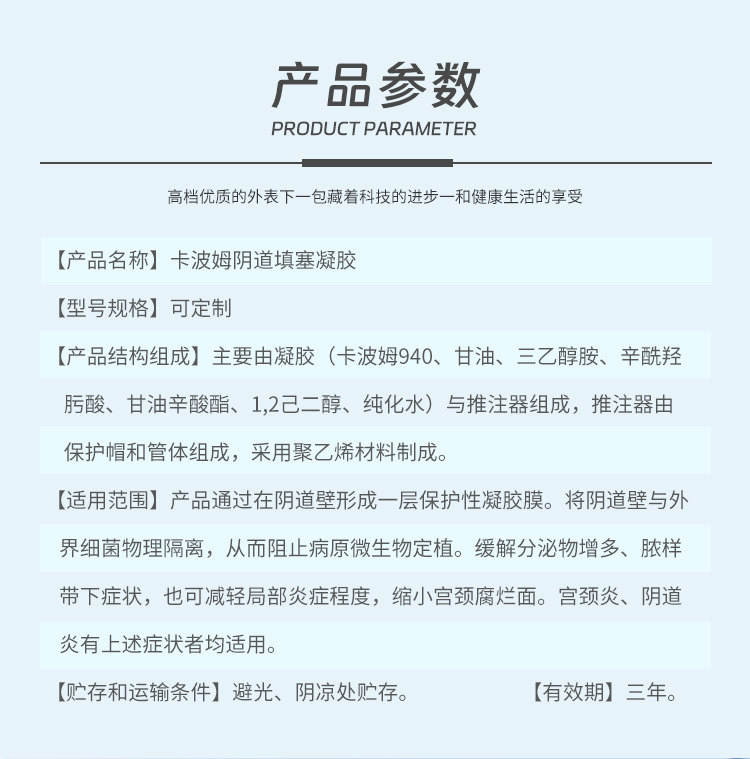 卡波姆陰道填塞凝膠 OEM宮頸陰道炎宮頸糜爛瘙癢異味水腫分泌物多
