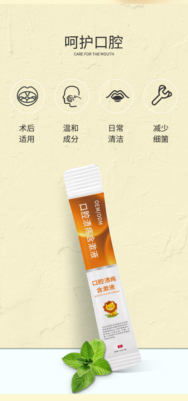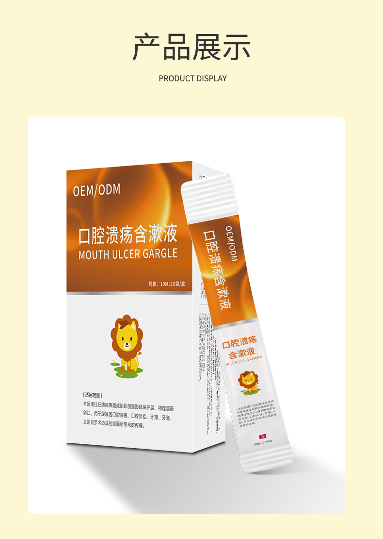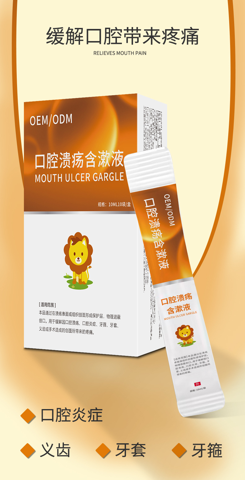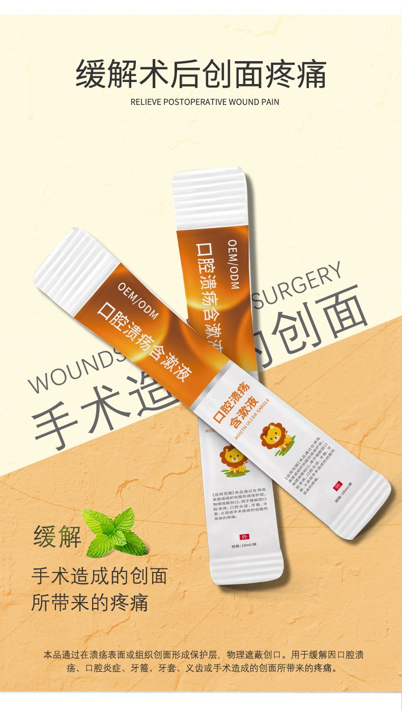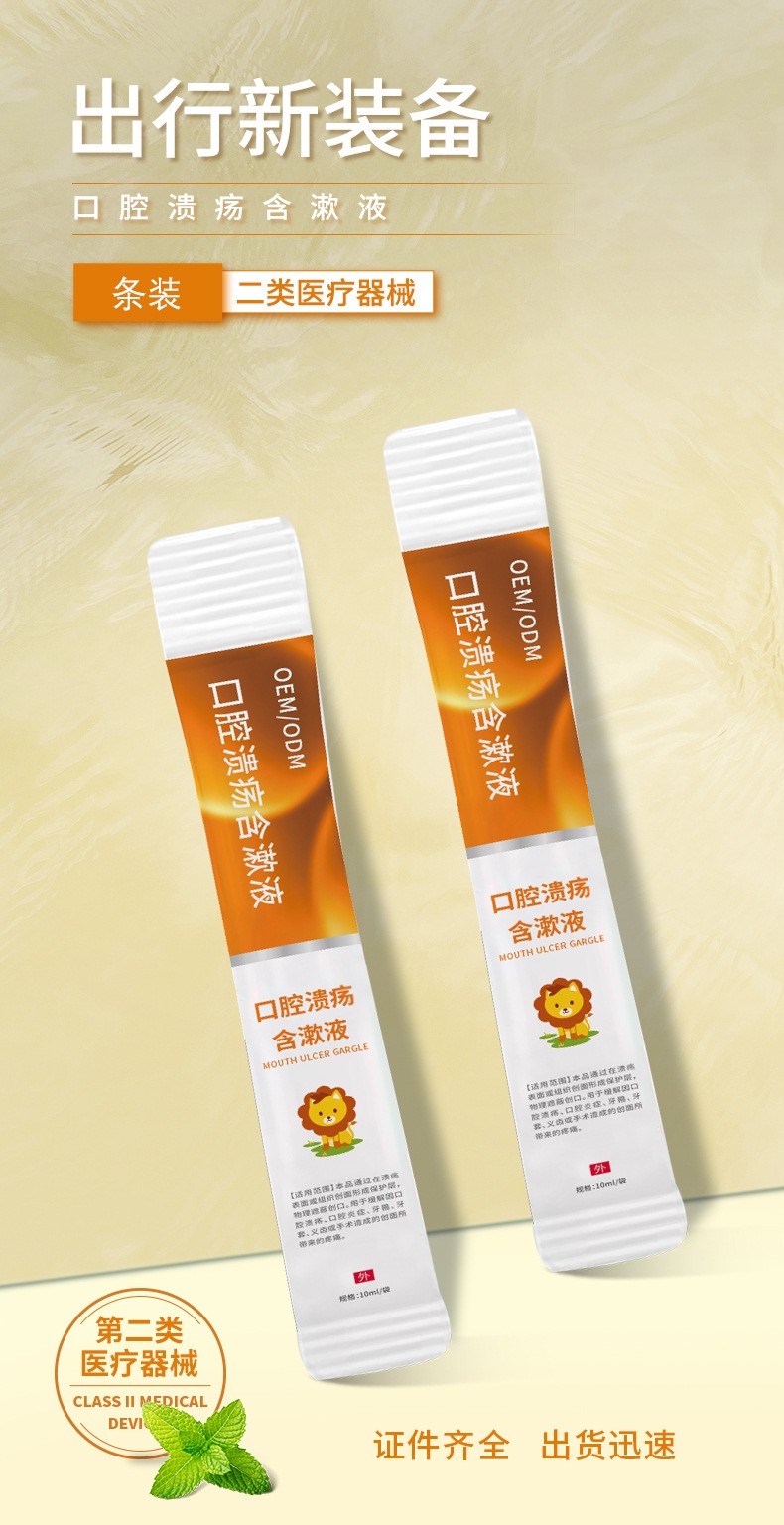 二類(lèi)醫(yī)療器械口腔潰瘍含漱液兒童型條裝 緩解口腔潰瘍口腔OEM貼牌