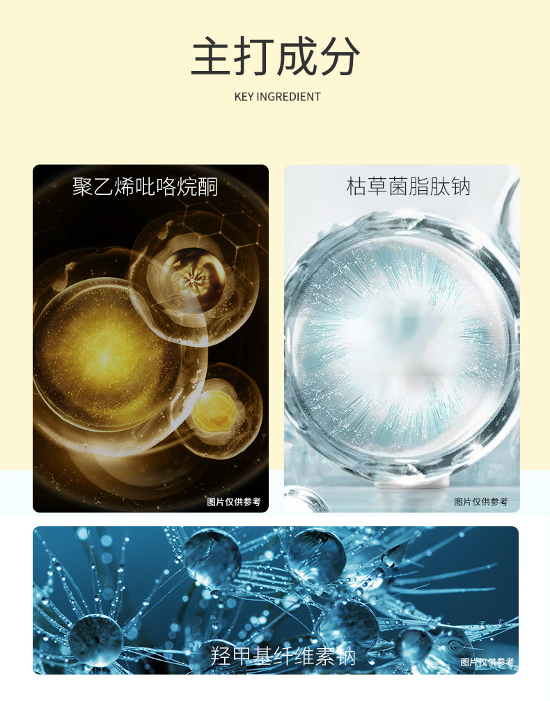 | 組成成分 | 產(chǎn)品由聚乙烯吡咯烷酮、羥甲基纖維素鈉、甘油、N-乙酰氨基葡萄糖、山梨醇、糖精鈉、乳酸、枯草菌脂肽鈉、純化水和塑料瓶(或鋁塑膜袋)組成。 |