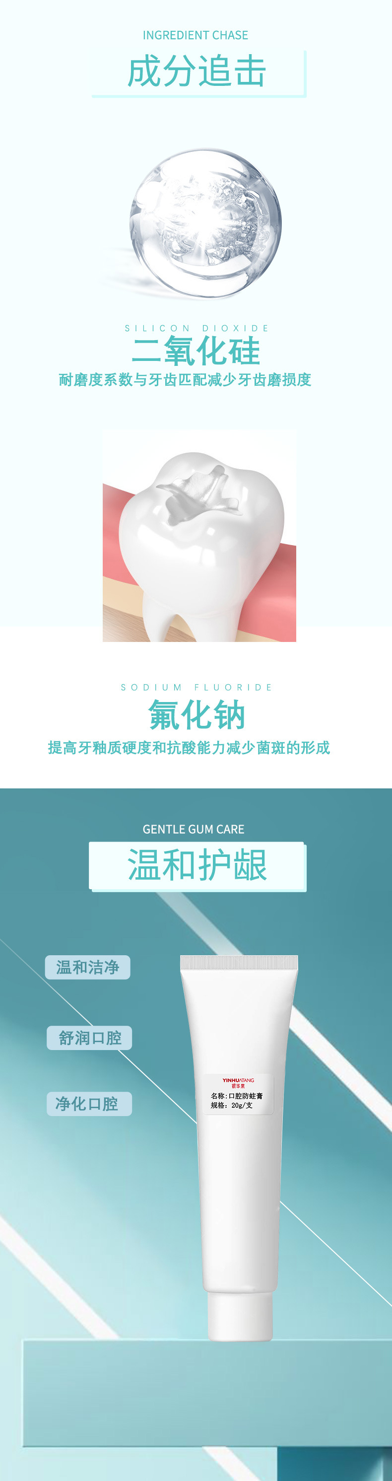 銀華棠工廠口腔防蛀膏拿樣專用口腔防蛀膏預(yù)防齲齒不適體驗(yàn)裝20g