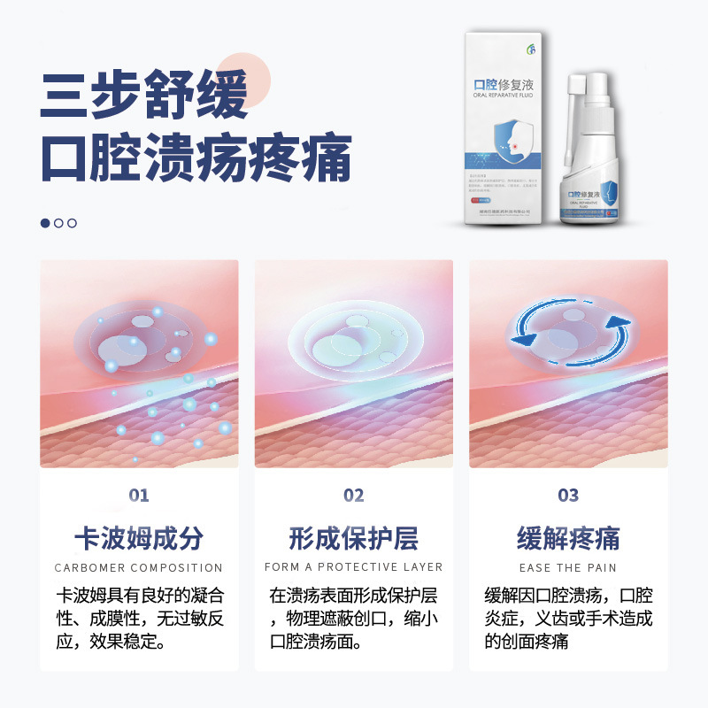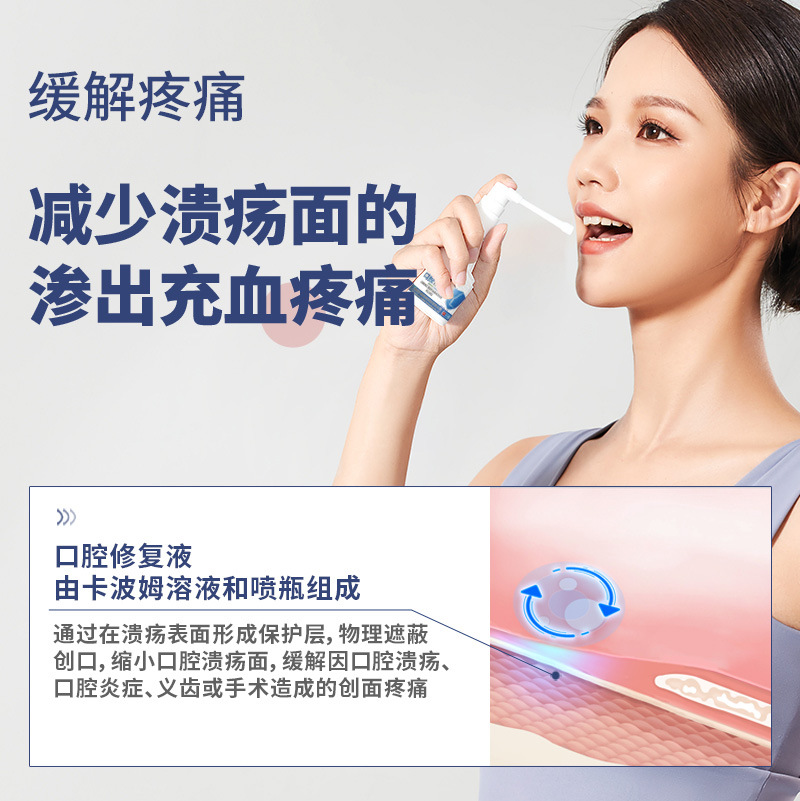 | 組成成分 | 口腔修復(fù)液由卡波姆溶液和噴瓶組成。 |