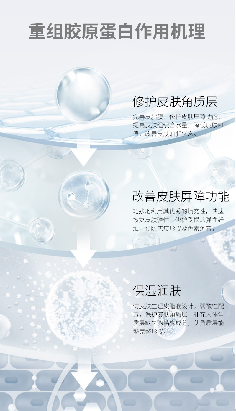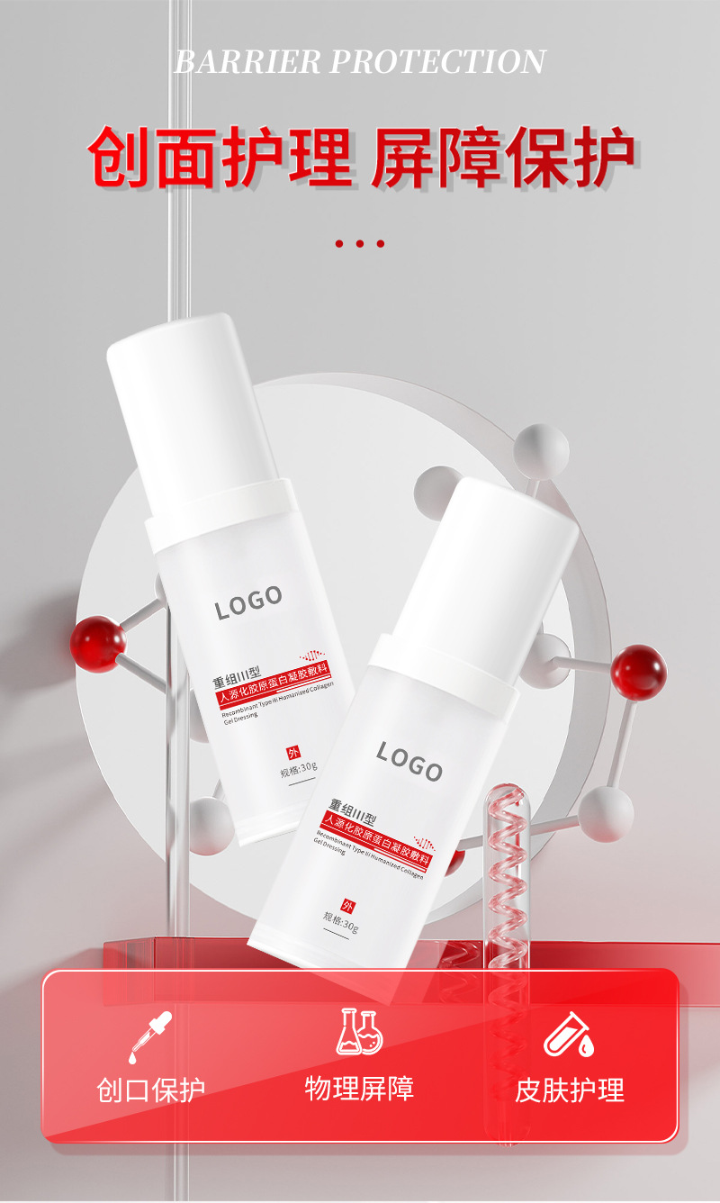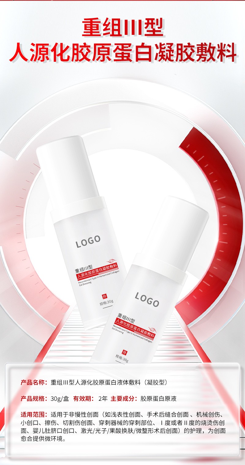 | 組成成分 | 產(chǎn)品由重組Ⅲ型人源化膠原蛋白黃原膠甘油尼泊金丙酯鈉三乙醇胺純化水組成包裝瓶采用PET材料制成。產(chǎn)品經(jīng)輻照滅菌后無(wú)菌供應(yīng)。 |