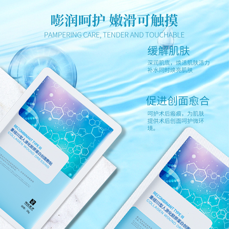 二類重組III型人源化膠原蛋白創(chuàng)面敷貼 美容院術后修護補水保濕